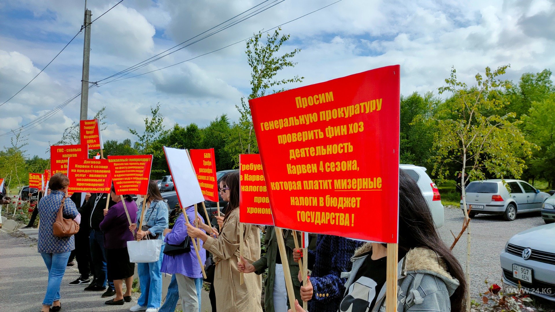 «На протяжении 17 лет собственники жилья не могут добиться расшифровки абонентской платы, которую объект представляет каждый месяц. В зависимости от квадратуры коттеджа мы платим по-разному (12 тысяч, 14 тысяч, 36 тысяч сомов). Но нам не дают отчет. С нас также взимают 5 процентов за то, что собственники коттеджей делают у себя ремонт. Есть еще один внутренний приказ, где говорится, что гости, которые приходят к нам, должны платить по 500 сомов (за взрослого) и 200 сомов за (ребенка)», — рассказала одна из участниц митинга.