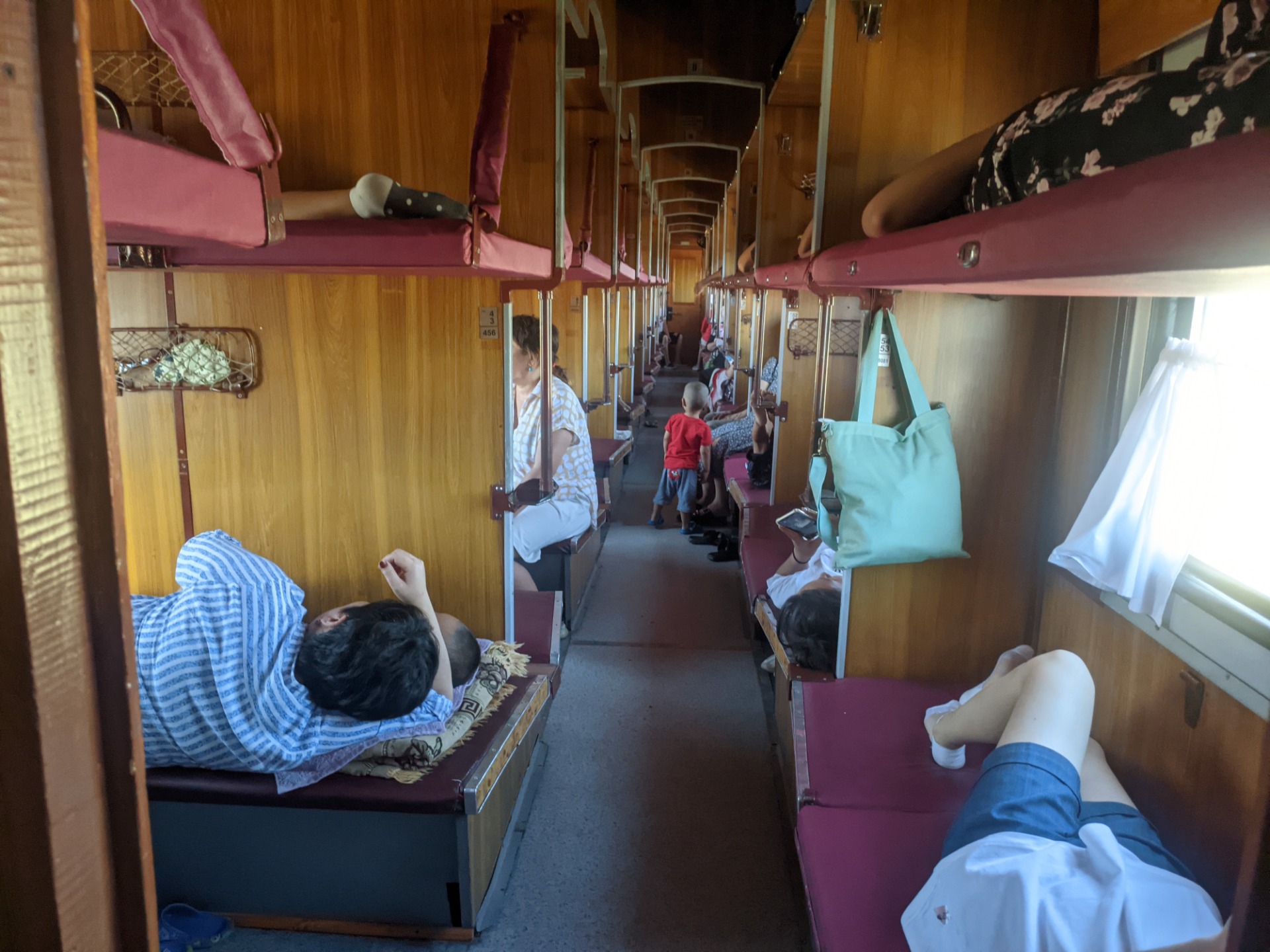 Девушка прогулялась и по плацкартному вагону. Как она подчеркивает, там было менее жарко и людей было не много. «И людей было не слишком много, многие смогли занять целую полку и спали, при этом пустые полки еще оставались», — написала она.