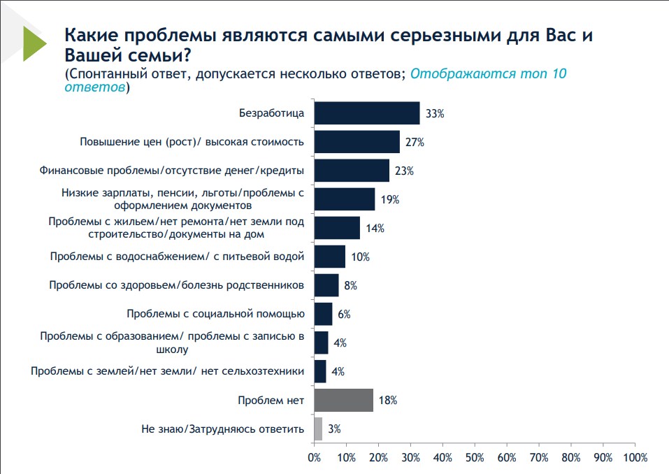 Среди прочих вопросов, граждан спросили о том, какие проблемы являются самыми серьезными для них и их семьи.
