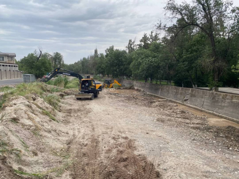 По ее данным, в русле убирают сухие кустарники и деревья, скашивают камыши и другие сорные растения. Работа ведется от пересечения улиц Скрябина и Малдыбаева до улицы Ахунбаева.