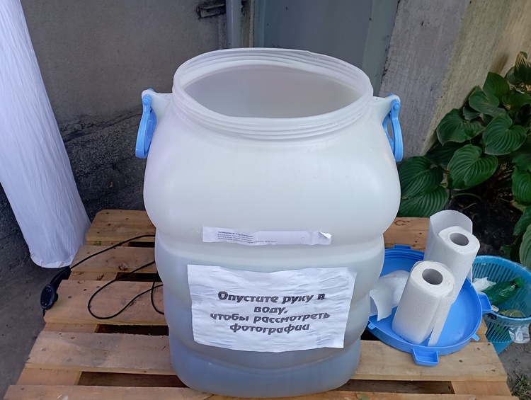 Организаторы отмечают, что дополняет фотографии и само выставочное пространство. Например, снимки о недоступной среде разместили в подвале, и посетителям придется спуститься по крутой лестнице, чтобы их увидеть. Или бочка с водой, которая показывает невидимые набережные столицы. Чтобы увидеть снимки, их надо достать из нее. Кстати, камни для этой работы собраны на одной из набережных.