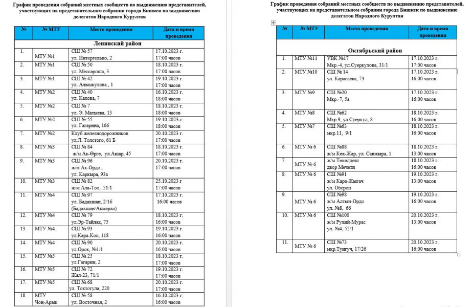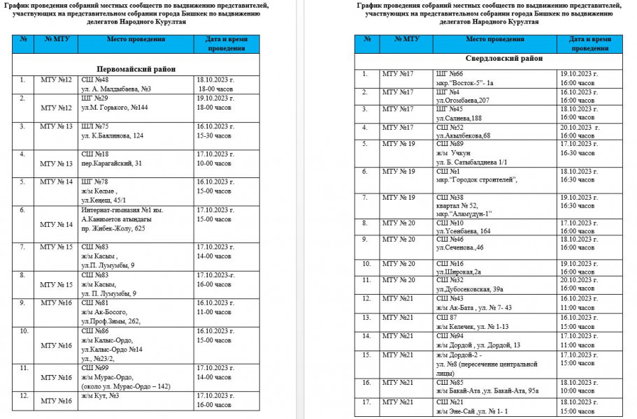 В Бишкеке пройдут собрания местных сообществ по выдвижению представителей, участвующих в представительном собрании города по выдвижению делегатов Народного курултая.