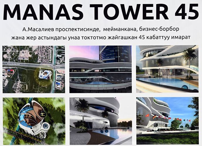 Президент Кыргызстана Садыр Жапаров заложил капсулу под фундамент строительства первого в истории страны высотного многофункционального гостиничного комплекса Manas Tower 45 в Бишкеке. В его реализации задействовано управление делами президента и зарубежные инвесторы. Завершить возведение планируется в течение 2,5-3 лет. Проектом предполагается, что комплекс здания состоит из 45 этажей, включает в себя пятизвездочный отель, бизнес-центр, конференц-залы, рестораны, гипермаркет, более 20 тысяч торговых площадей и подземную автостоянку на 600 легковых автомобилей.