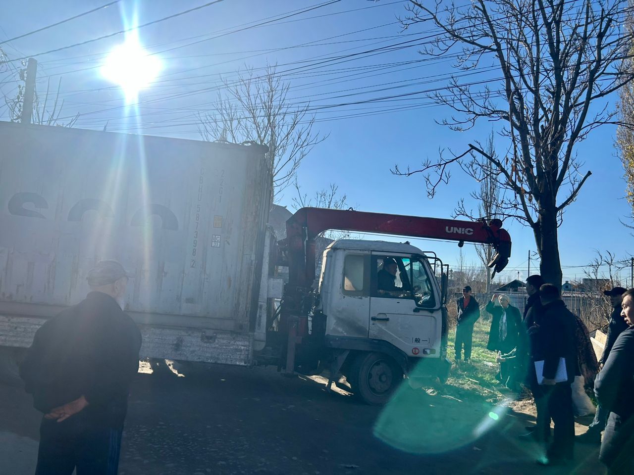 Во время митинга между жителями произошла перепалка. Представитель Венеры Абдыкеримовой в сопровождении судебных приставов снес забор участка Токтыхан Муллахуновой и пытался завести на участок контейнер.