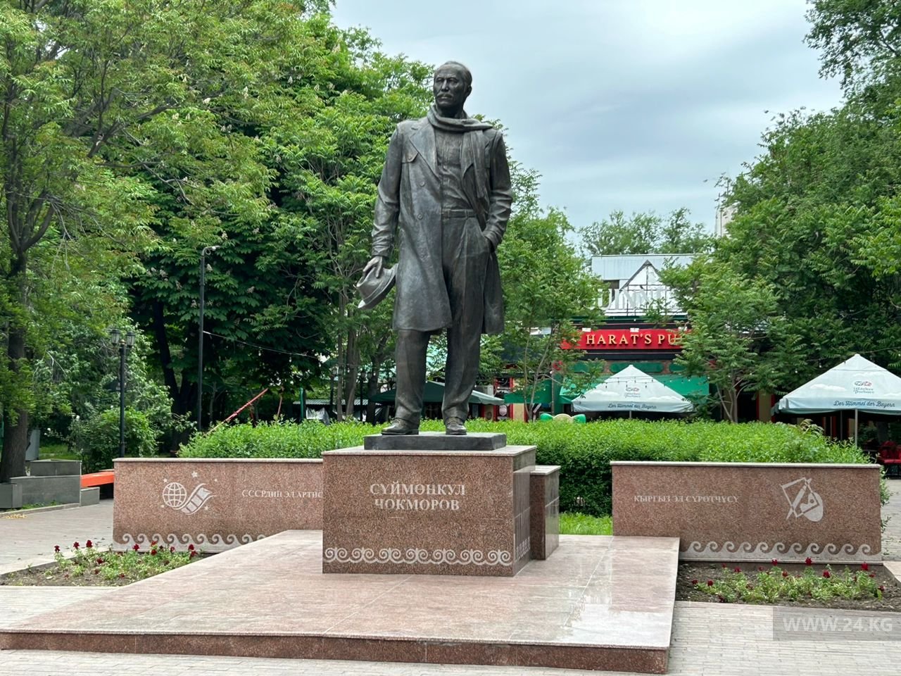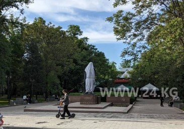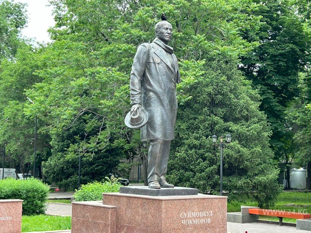 В Бишкеке снова установили памятник Суйменкулу Чокморову. Фотографии 24-kg.com прислал читатель.