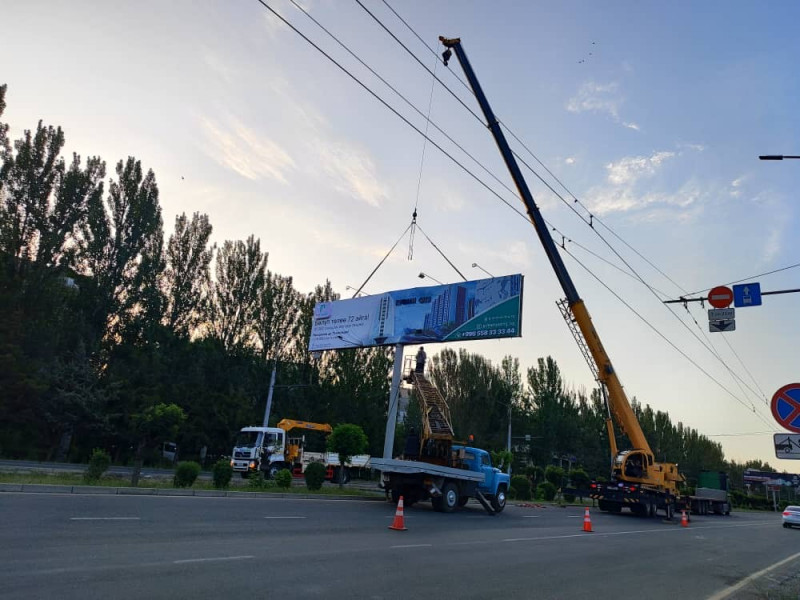 По ее данным, сейчас демонтируются рекламные щиты на пересечении улиц Жукеева-Пудовкина и Исы Ахунбаева.
