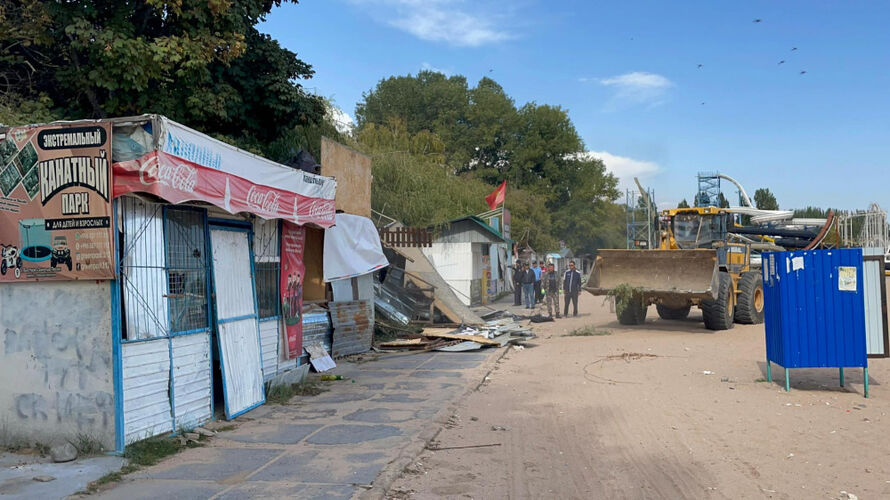 В апреле Госстрой сообщал, что на территории парко-пляжной зоны озера Иссык-Куль в селе Бостери и пансионата «Золотые пески» принудительно демонтируют незаконные объекты облегченного типа.