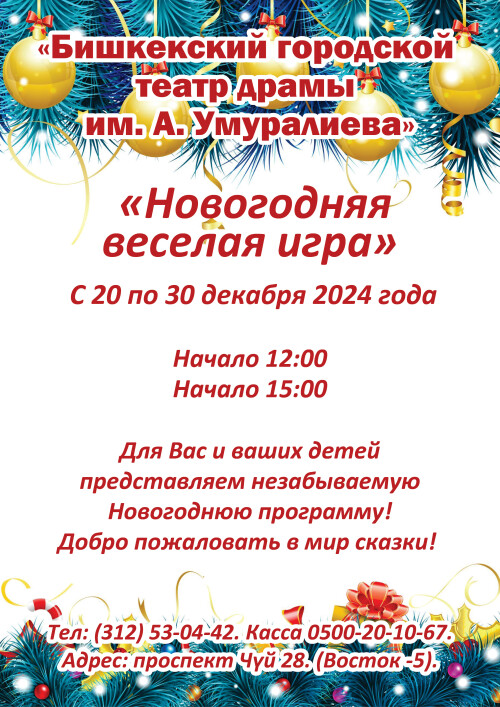 Бишкекский городской драматический театр имени Умуралиева, 12.00, 15.00.
