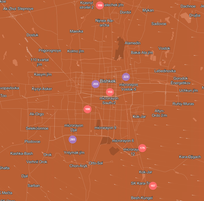 Загрязнение воздуха в Бишкеке на 4 февраля. Что показывают датчики