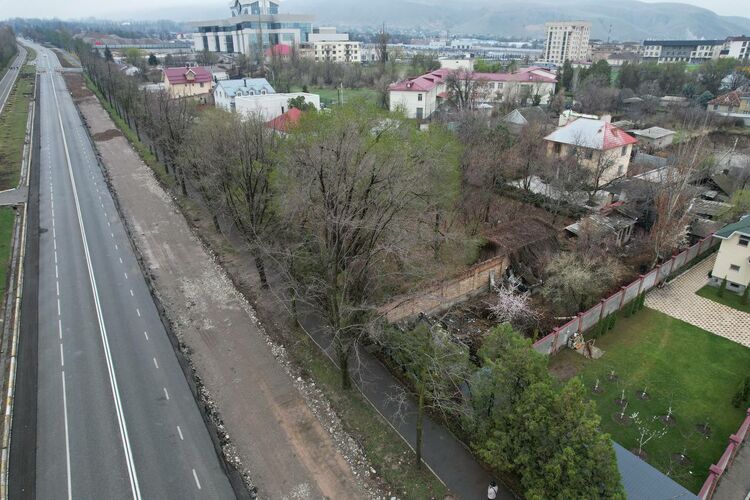 участке проспекта Жибек Жолу от улицы Лермонтова до улицы Буденного с южной стороны. С северной стороны организуют временное двустороннее движение. Подрядная организация — ОсОО «Мостдорстрой»;