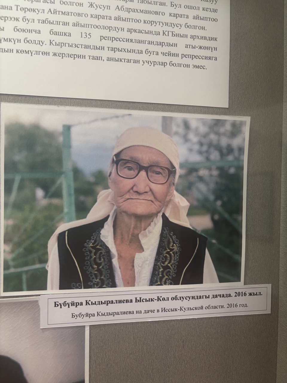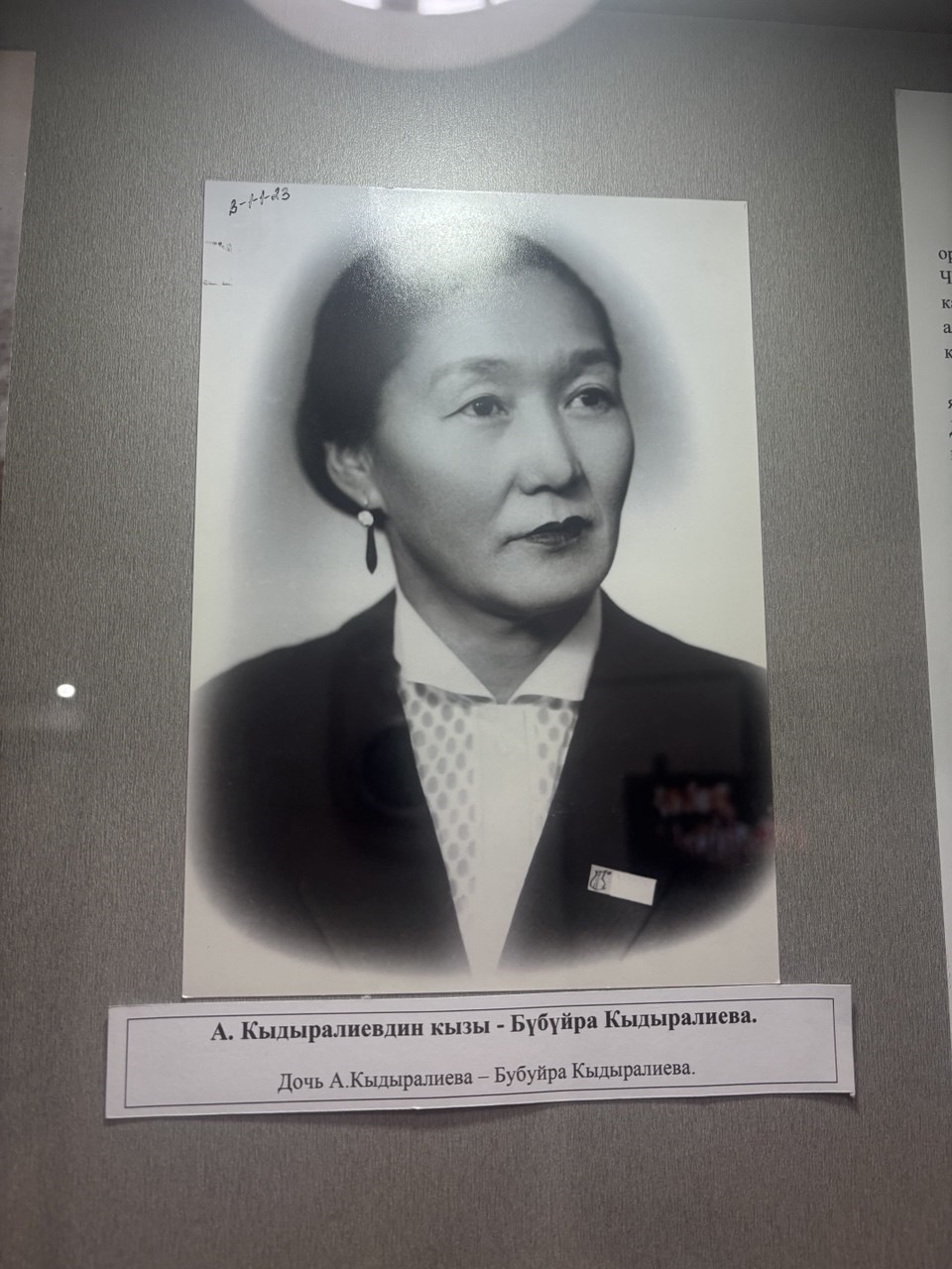 Директор музея отмечает, что Бубура Кыдыралиева была образованной и грамотной, после войны окончила в Ленинграде профсоюзную школу, возглавляла Дом кино в Боконбаево на Иссык-Куле. И даже в старости, по его словам, сохранила хорошую память.