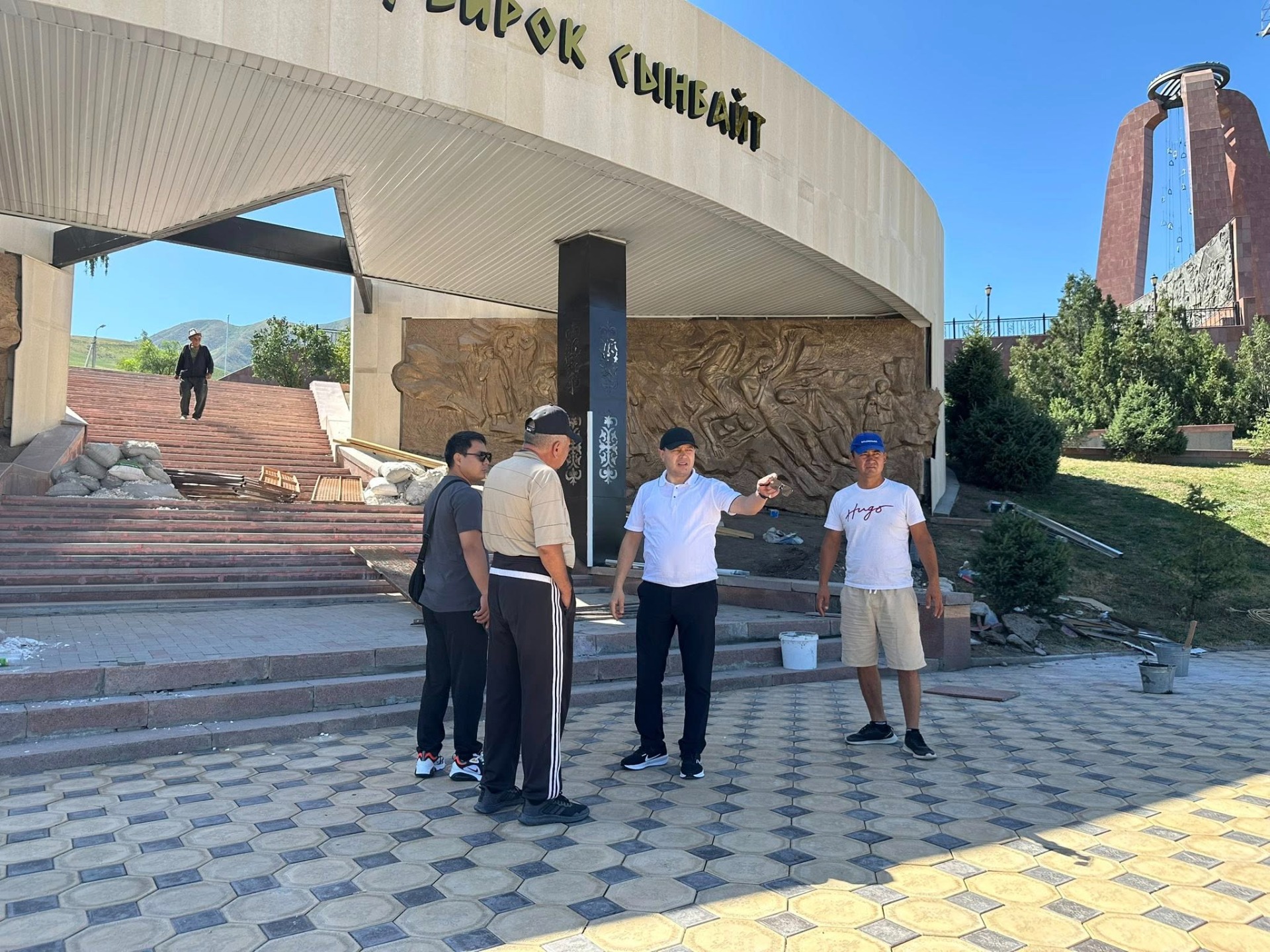 Сегодня, 12 июля, министр культуры, информации и молодежной политики Мирбек Мамбеталиев и первый заместитель министра Союзбек Надырбеков ознакомились с ходом ремонтно-восстановительных работ, проводимых в Национальном историко-мемориальном комплексе «Ата-Бейит».