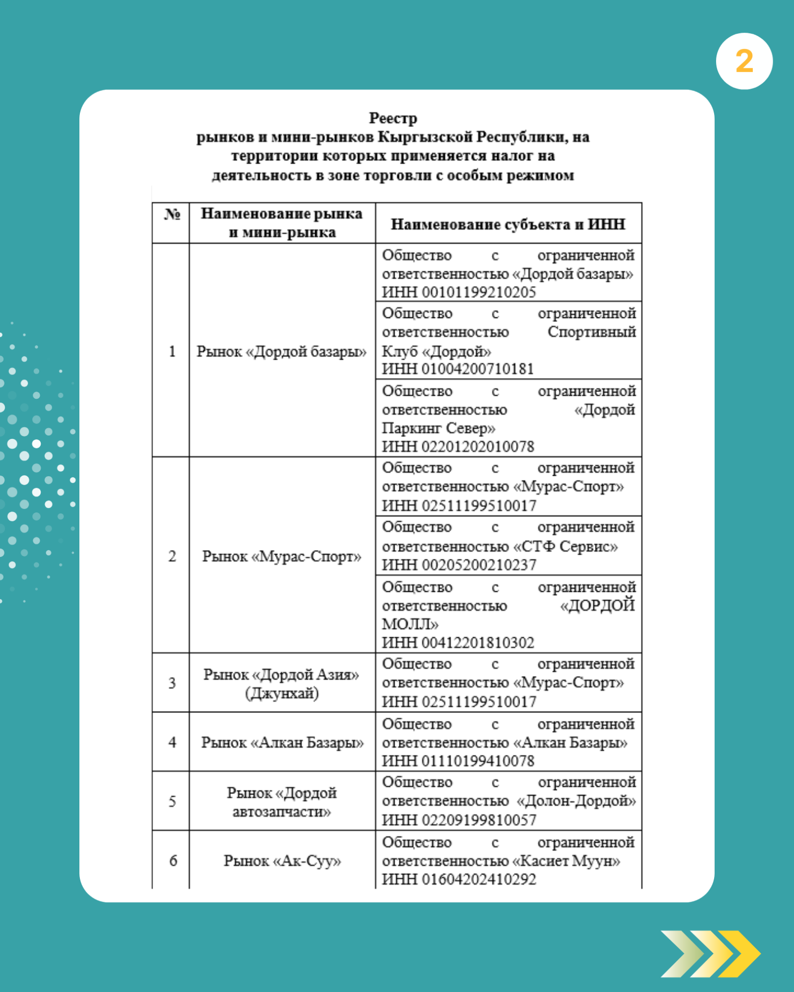 3. Утверждены налоговые ставки и реестр рынков, где действует особый режим. В список вошли 17 рынков.