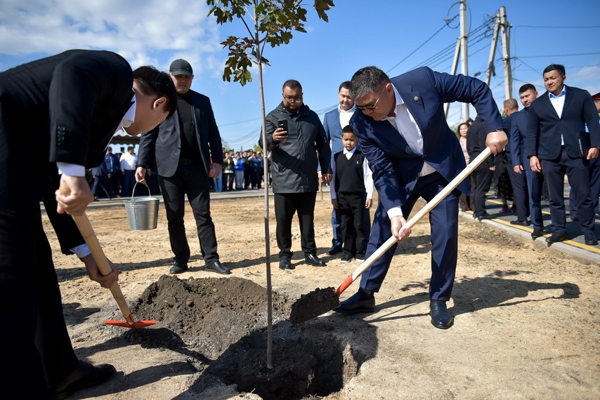 В завершение церемонии он и Камчыбек Ташиев посадили саженцы тополя перед зданием школы.