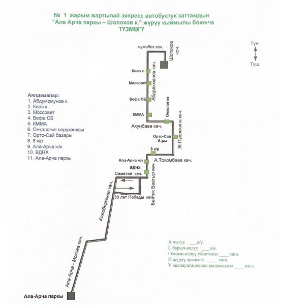 В Бишкеке в связи с временным перекрытием улицы Абдымомунова в районе площади имени Турдакуна Усубалиева (Старая площадь), экспресс-маршрут № 1 (Парк «Ала-Арча» — улица Шопокова) по субботам и воскресеньям будет следовать по улицам Шопокова и Жумабека.