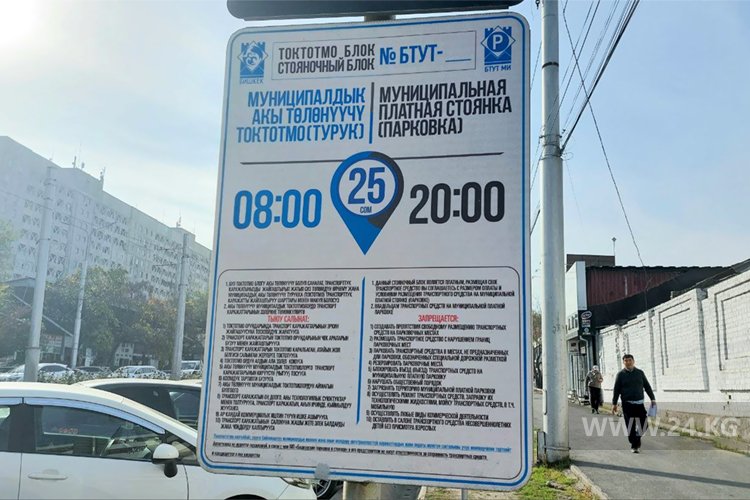 Мэрия предложила ввести дифференцированную (почасовую) оплату парковок в столице. В центральной части города намерены установить плату по зональному типу в размере от 40 до 60 сомов наличными. При оплате по QR-коду — от 30 до 50 сомов в час.