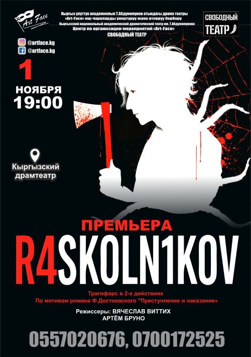 Спектакль, поставленный по мотивам романа Федора Достоевского «Преступление и наказание», — это дерзкое погружение в бездну человеческой души. Это первый спектакль, в котором режиссер Вячеслав Виттих будет играть на сцене.