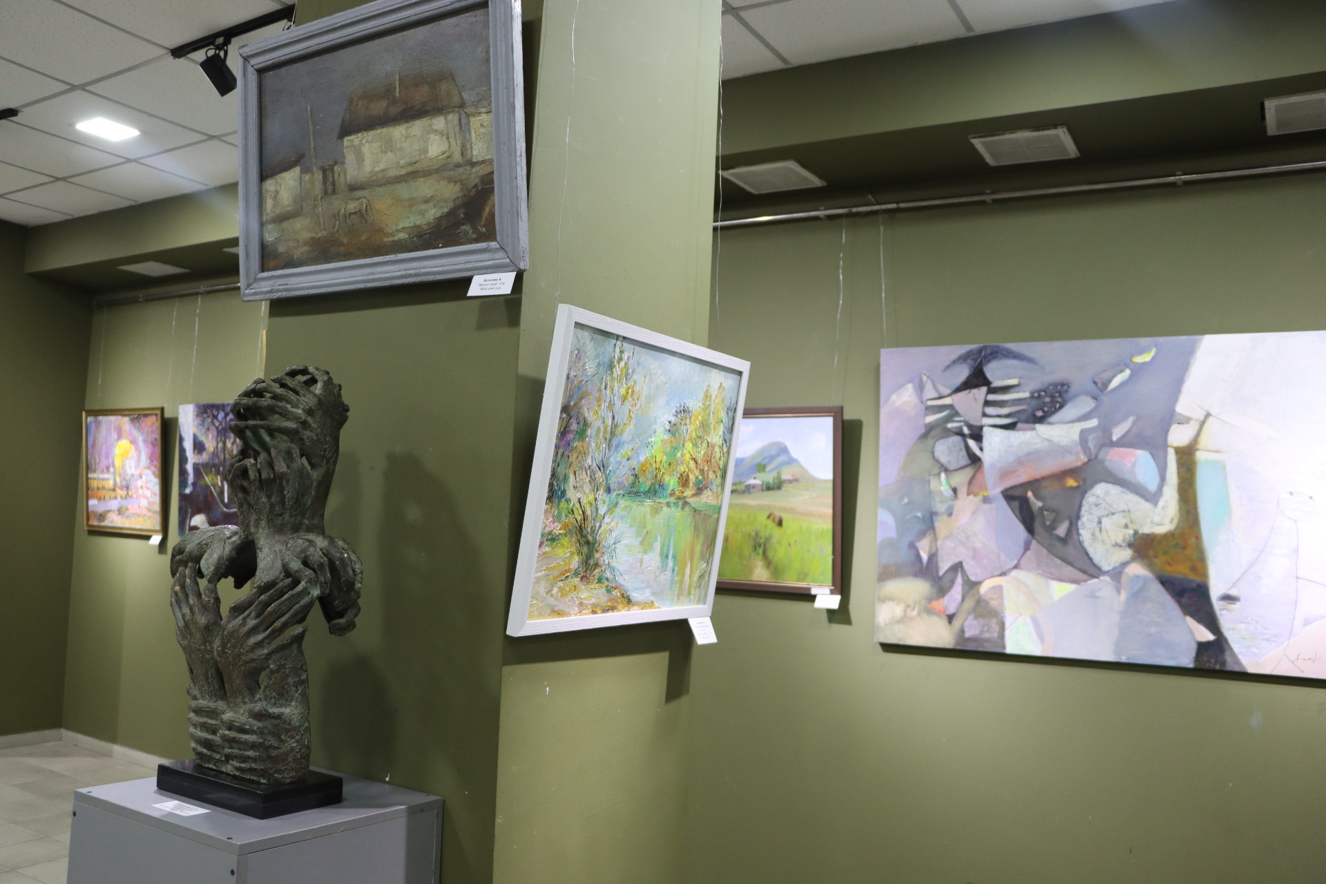 На выставке выставили более 150 работ и распределили на два этажа. На первом расположены живопись и скульптуры, а на втором — графика и декоративно-прикладное искусство. В работах представлены разные направления и жанры: от реалистичных до авангардных композиций. Скульпторы использовали разные материалы как бронзу, камень и пластик.