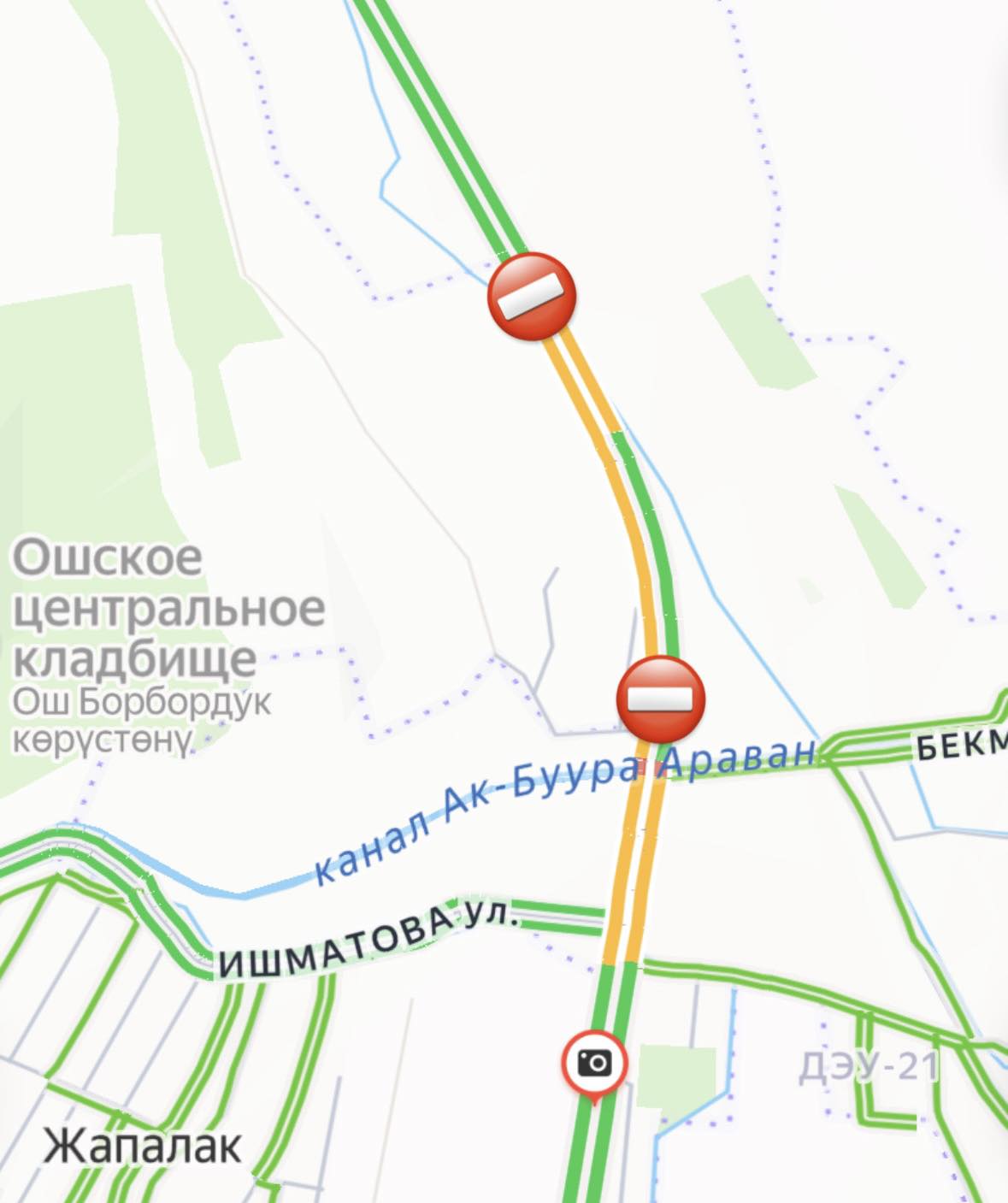«Закрывается участок дороги, где проходит канал Араван — Ак-Буура. Для легковых машин предусмотрена альтернативная дорога. Просим автолюбителей заранее планировать маршрут», — говорится в сообщении.