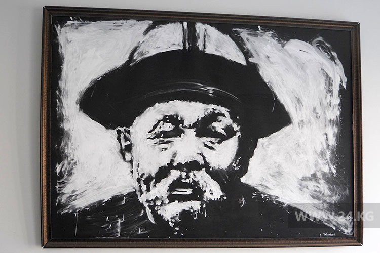 В современных коридорах театра чувствуется история. На стене большой портрет знаменитого манасчи Саякбая Каралаева. Картина, написанная айраном, уникальна и принадлежит перу художника Толгобека Койчуманова.