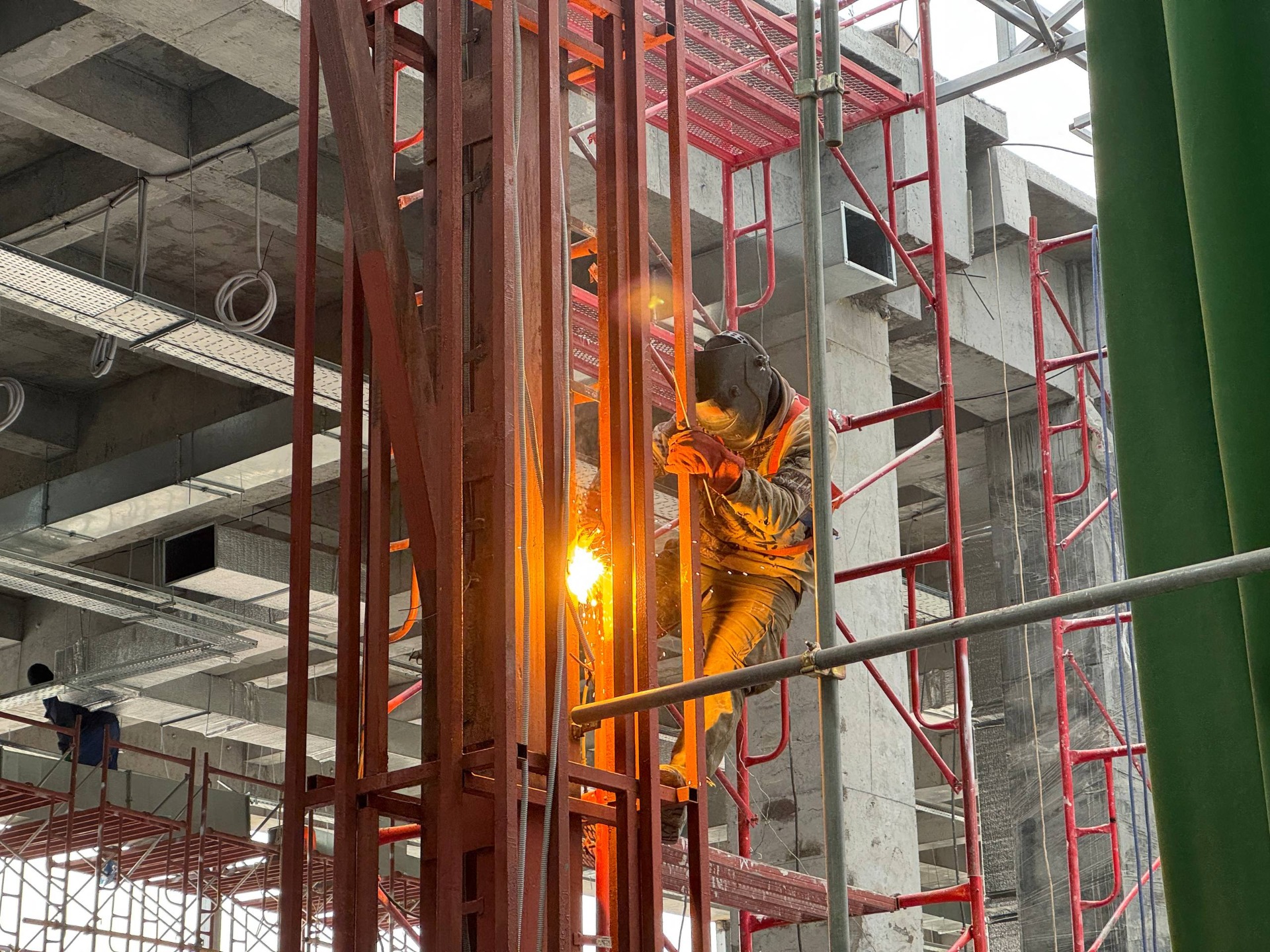 Он рассказал, что строители работают круглосуточно. Днем около 400 человек, а в ночное время — 200. В конце февраля их число увеличится вдвое.
