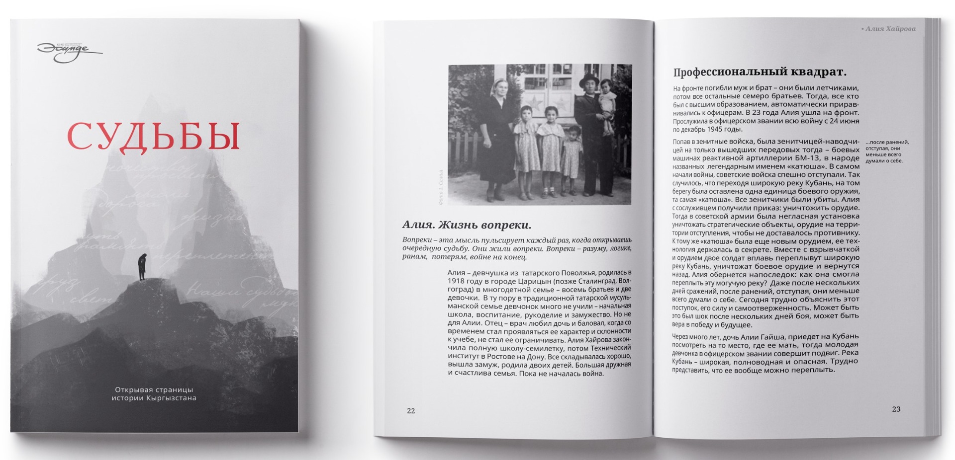 Книга «Судьбы» исследовательского проекта «Эсимде», который занимается вопросами памяти и осмысления исторических процессов в Кыргызстане, вошла в топ-25 ключевых книг Центральной Азии 2025 года по версии 98mag — казахстанского медиа о культуре.