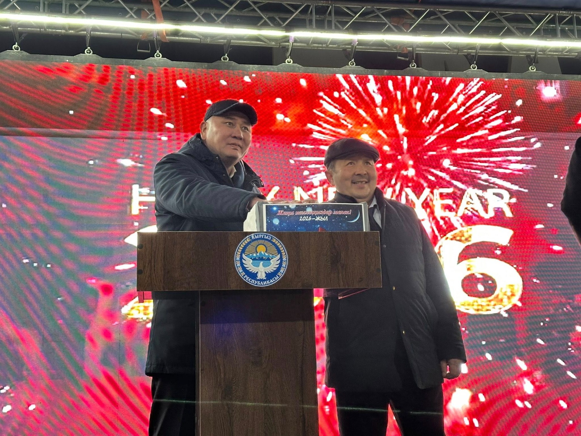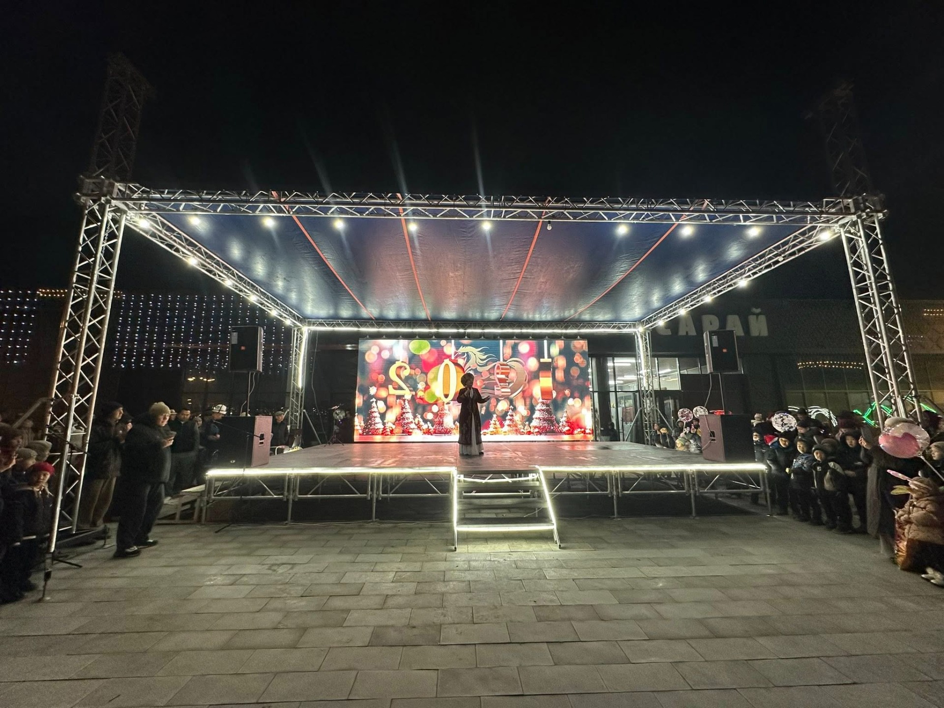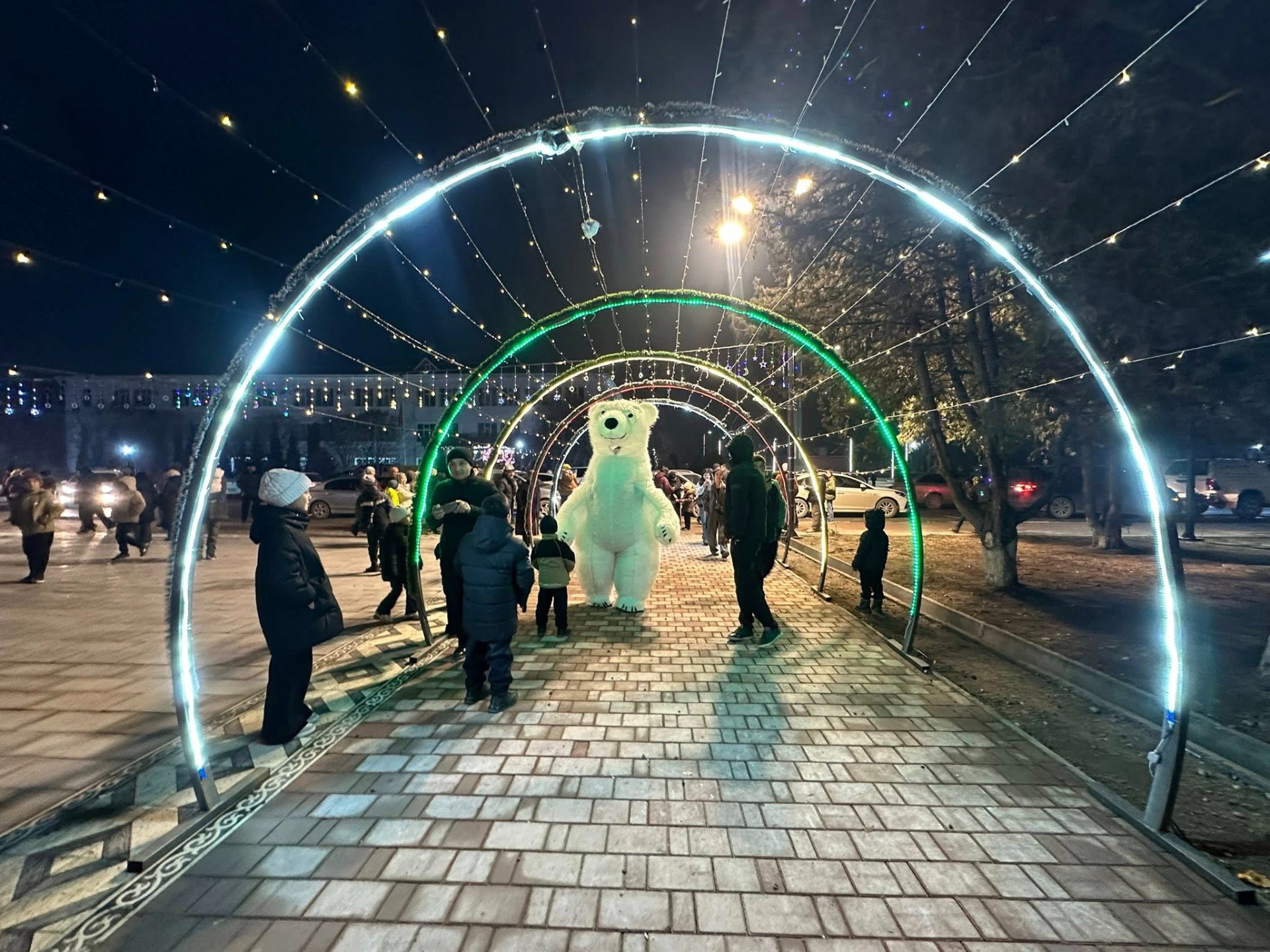 По ее данным, новогоднюю елку зажгли полномочный представитель главы государства Айбек Шаменов и мэр города Сейтек Кулубаев.