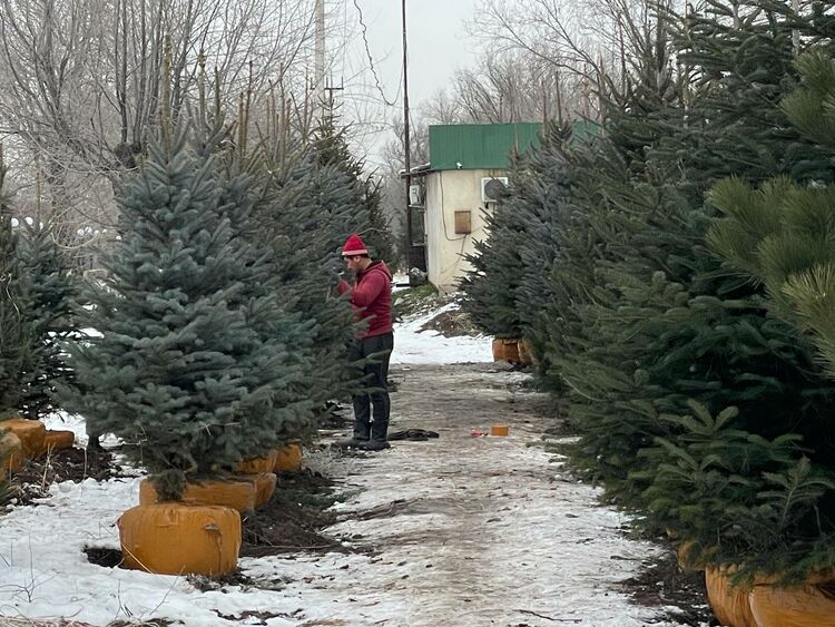 Живые ели в этом году вновь подорожали. В ассортименте точек продаж в Бишкеке пихты, голубые и тянь-шаньские ели. По словам продавцов, в предновогодние праздники на хвойные деревья повышенный спрос. В день продается по шесть-семь елок.