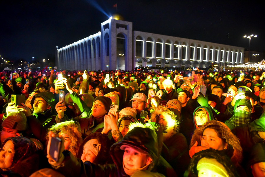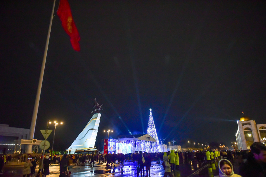 Основные мероприятия прошли на площади Ала-Тоо. С вечера 31 декабря там состоялась концертная программа с участием отечественных артистов, работали световые инсталляции и праздничная подсветка. Несмотря на дождь со снегом, к полуночи на площади собрались тысячи горожан и гостей столицы.