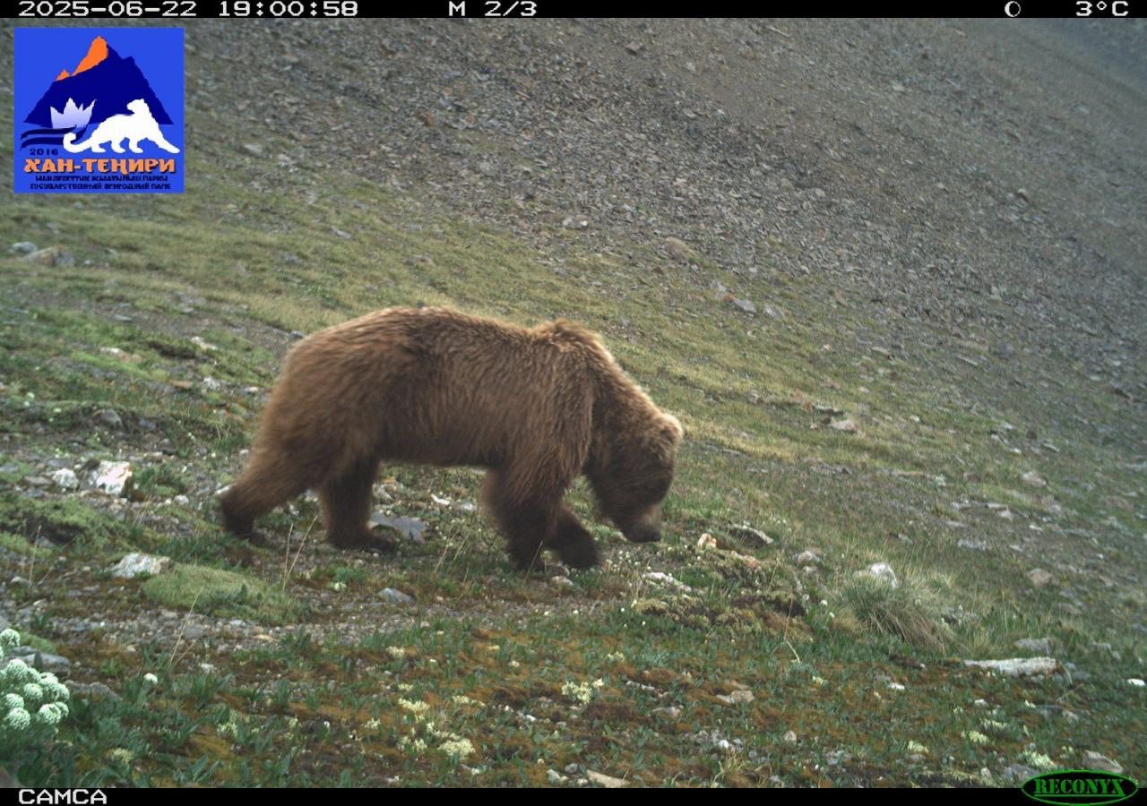 По его данным, особое внимание привлекает увеличение популяции бурого медведя, занесенного в Красную книгу Кыргызской Республики. Обитающего в данном регионе, его также называют тянь-шаньским белкоготным, что подчеркивает уникальность и высокую природоохранную ценность.