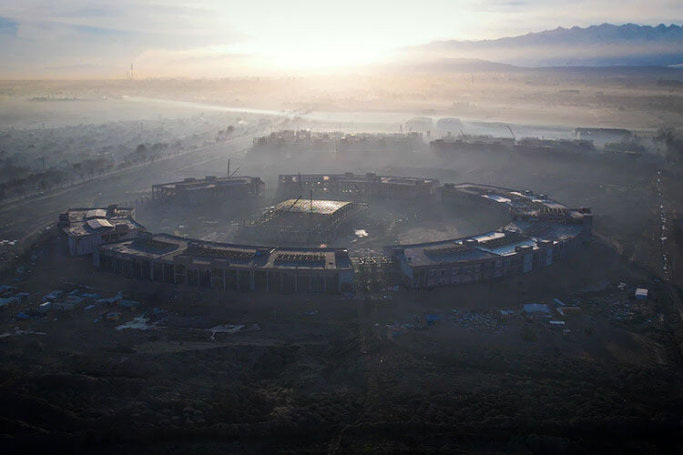 Активно ведутся строительные работы на территории нового Ошского рынка. Один из крупнейших торговых объектов региона уже сегодня приобретает четкие очертания и, по прогнозам строителей, сможет начать функционировать уже в текущем году.