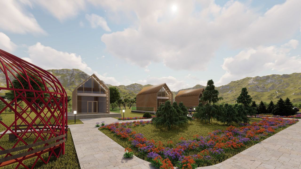 Проект предусматривает озеленение прилегающей территории, установку малых архитектурных форм, создание удобных парковочных зон, а также обустройство комфортного общественного пространства для посетителей. Планируется организация пешеходных дорожек, зон отдыха, дополнительных зеленых участков и элементов, улучшающих туристическую инфраструктуру комплекса.