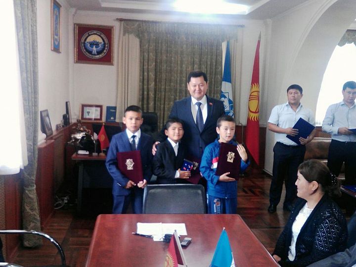 По словам председателя БГК Алмаза Кененбаева, в ходе встреч с избирателями и работниками МТУ в жилмассиве «Колмо» выяснилось, что 4 сентября трое пятиклассников из школы №78 (Баяман Азимов, Арсен Камбаралиев и Эрнис Ташболотов) спасли двухлетнего ребенка, тонувшего в реке Ала-Арче. Азимов сделал ему искусственное дыхание. «Мы удивились. Баяман сказал, что у них в школе есть урок, где преподают, как делать искусственное дыхание, - сказал Алмаз Кененбаев. – Очень гордимся такими нашими учениками. Мы должны поощрять смелых горожан, развивать дух патриотизма. Будем проводить профилактику, чтобы такие инциденты не повторялись».