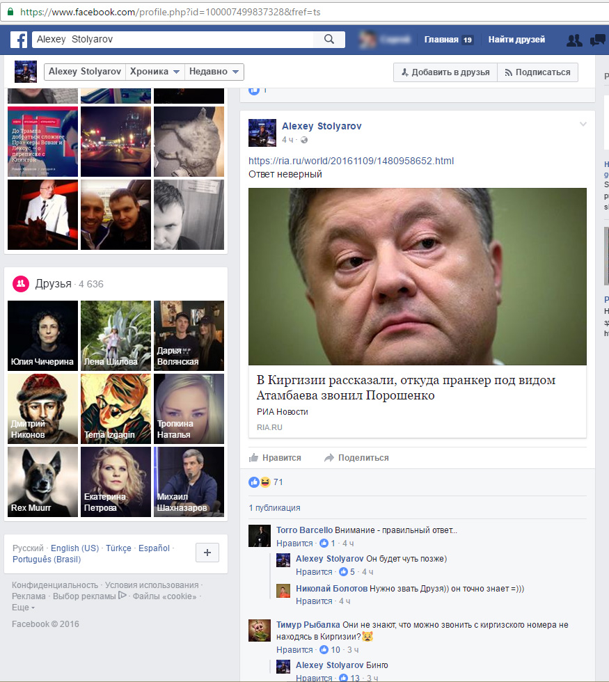 Следом на своей странице в Фейсбуке пранкер Алексей Столяров разместил информацию, в которой прокомментировал новость так: «Ответ неверный». А на комментарий собеседника «Они не знают, что можно звонить с киргизского номера, не находясь в Киргизии?» Алексей ответил: «Бинго».