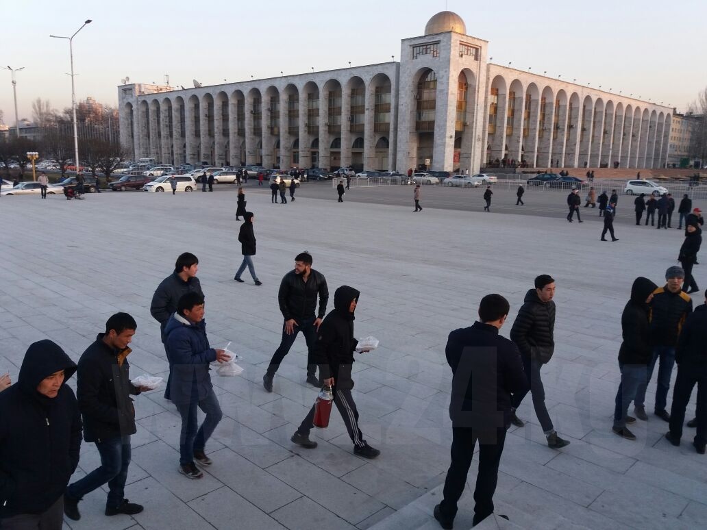 Участникам акции протеста в поддержку Омурбека Текебаева, которые митингуют на площади