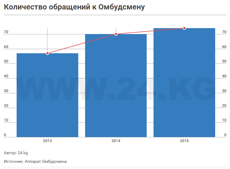 В аппарате омбудсмена ИА «24.kg» рассказали, что за 2016 год поступило 47 обращений, однако ни один факт жестокого обращения не подтвердился. Информация из регионов еще не обработана. Статистика за последние 3 года говорит о том, что количество обращений постоянно растет. За это время имеется только один факт в Джалал-Абадской области, когда двоих милиционеров осудили за применение пыток.