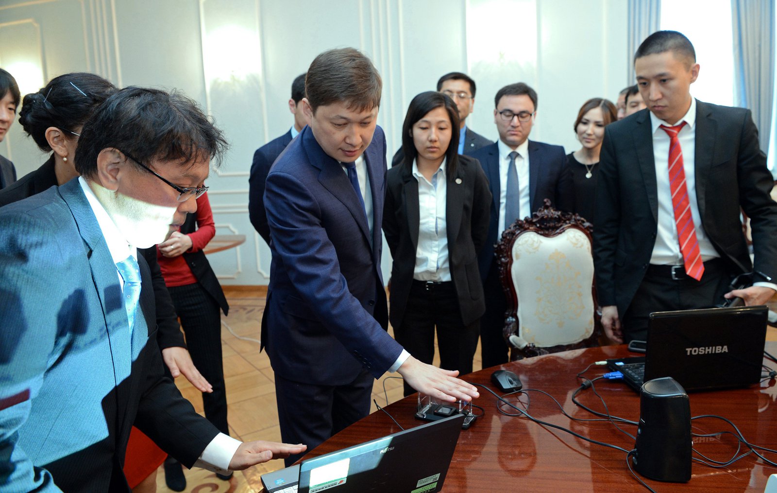 «В ходе встречи отмечена положительная динамика развития сотрудничества между Кыргызстаном и Японией. Кыргызская сторона выразила заинтересованность в привлечении японских передовых технологий в реализацию инфраструктурных проектов, в частности в «Таза коом». Японская сторона предоставила детальную информацию о возможностях и потенциале японских компаний и реализованных проектах. Кроме того, озвучены предложения по более тесному сотрудничеству и использованию опыта и технологий указанных компаний в КР», — говорится на сайте президента.