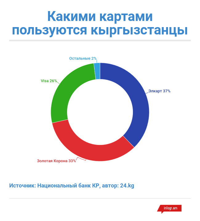 Отмечается, что на 31 марта 2017 года в республике в обращении находился 1 миллион 692,6 тысячи карт. По сравнению с аналогичным периодом прошлого года их число выросло на 31,8 процента. При этом большую часть рынка занимают международные системы переводов (60,7 процента рынка). На национальную систему «Элкарт» приходится 39,3 процента карт.