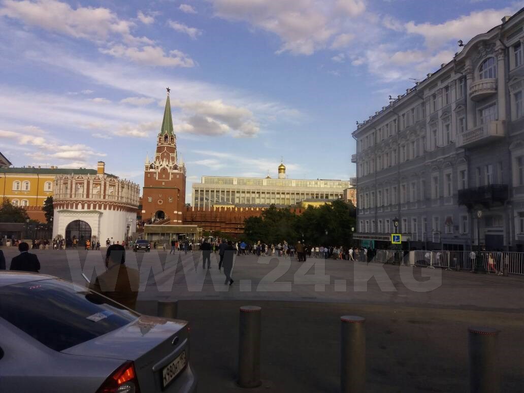 Еще до начала мероприятия на площади у входа в Кремлевский дворец многолюдно. Много представителей кыргызской диаспоры. Для них мероприятие стало еще одной хорошей возможностью встретиться со старыми друзьями и знакомыми.