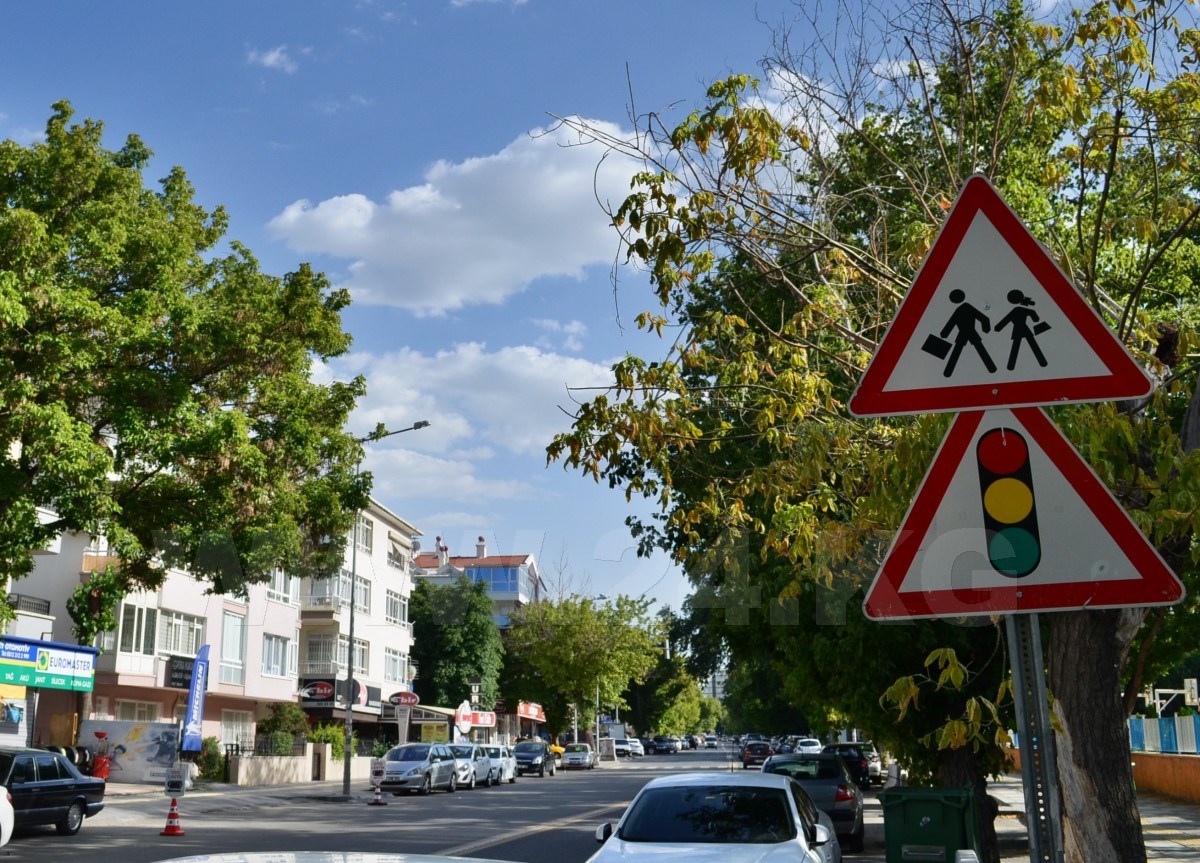 Вдоль улицы преимущественно трех- и пятиэтажные жилые дома, но есть и многоэтажки. В начале трассы станция метро «Бахчелиэвлер», или, правильнее сказать, «подземки анкарай». Так называется «зеленая линия» метро. Есть еще «красная».