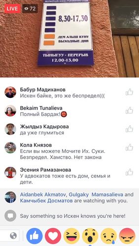 Чинара Джакупбекова напомнила Айбеку Эрнис уулу о неоднократных нарушениях УПК, а также указала, что уже 18.00, рабочий день закончился, предложив перенести слушания на завтра. Председательствуюший сказал, что суд регламентируется УПК, а не Трудовым кодексом.