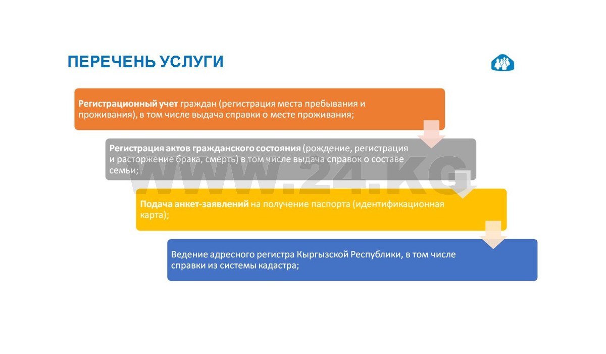- по линии паспортных столов (оформление и изготовление идентификационной карты – паспорта гражданина КР образца 2017 года (ID-карта) и общегражданского паспорта гражданина КР образца 2006 года и их выдачу;