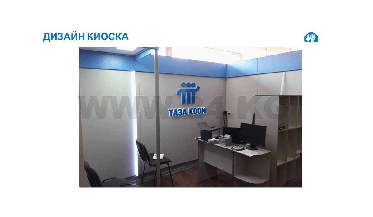 В настоящее время запущены киоски в 363 филиалах ГП «Кыргыз почтасы». Распределение по регионам: в Джалал-Абадской области - 48, в Нарынской - 46, в Талассской - 31, в Чуйской - 96, в Иссык-Кульской - 43, в Ошской - 70, в Баткенской – 29.