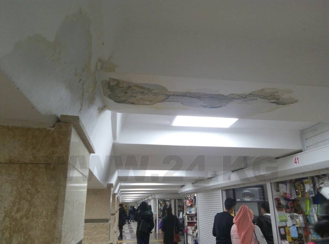 В Бишкеке в подземном пешеходном переходе на пересечении проспектов Чуй и Манаса снова протекает потолок.