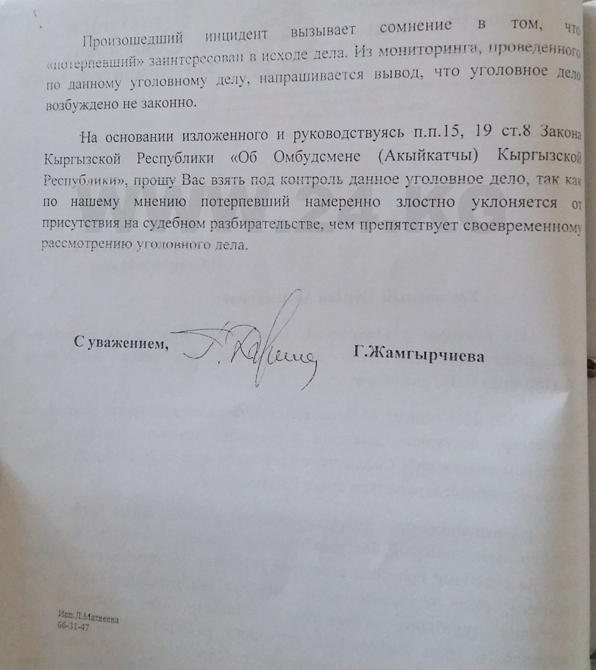 Как пояснил ИА «24.kg» адвокат, ранее изучавший данное дело, Тимур Жанаев, на сегодня в Уголовно-процессуальном законодательстве КР имеется существенный пробел.