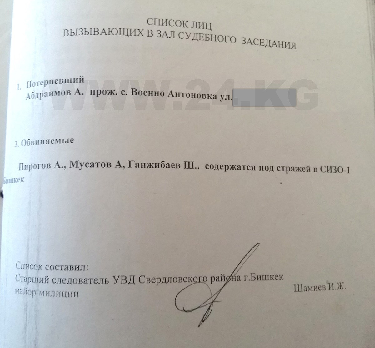Также в соответствии со статьями 68, 176 и 177 УПК КР осмотр места происшествия производится с участием не менее двух понятых. А их, как мы выяснили, и не было...