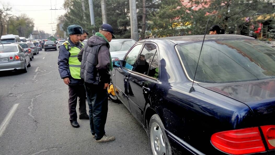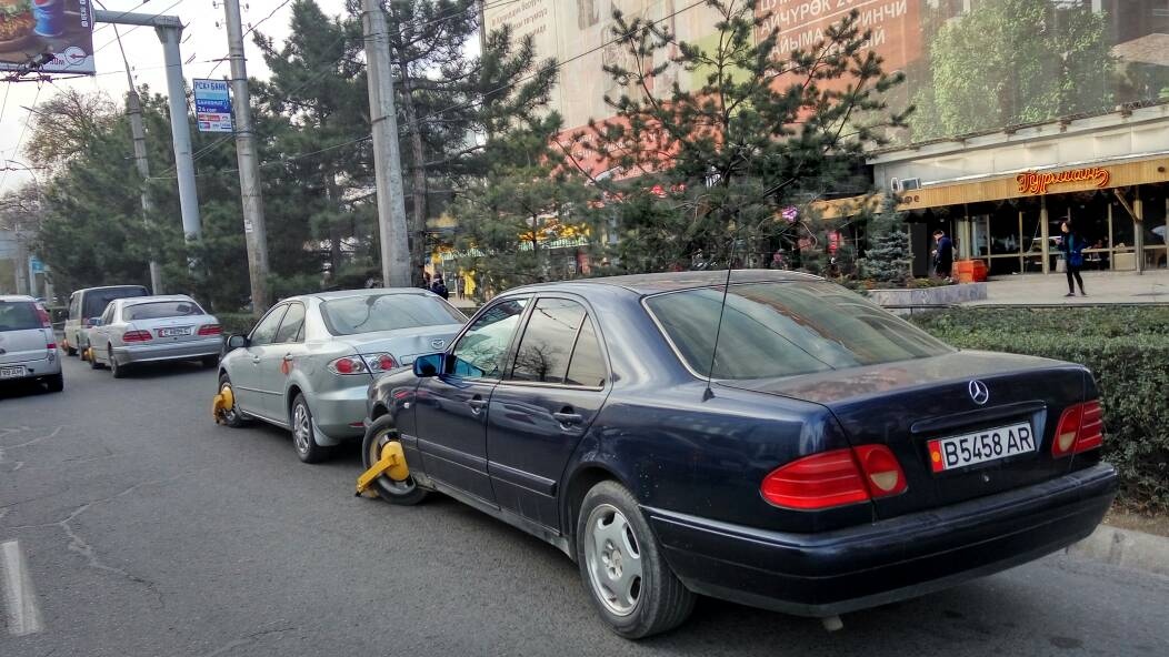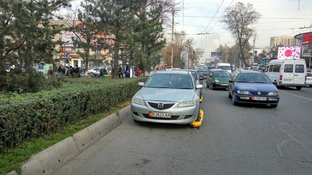 В Бишкеке активно применяют блокираторы колес. Возле ЦУМа «Айчурек» Главное управление по обеспечению безопасности дорожного движения проводит рейд.