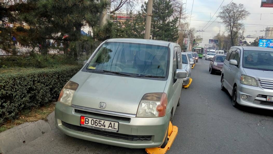 По инструкции, на колесо неправильно припаркованного автомобиля устанавливают блокиратор. Дверь пломбируют, наклеивая стикер с номером телефона инспектора. Водитель должен позвонить по указанному номеру, после чего на место приедет сотрудник, установивший блокиратор. Он составит административный протокол нарушения. Штраф за парковку в неположенном месте составляет 1 тысячу сомов.
