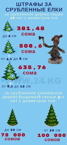Цена на елку в 50 сантиметров — 200 сомов, 1 метр — тысяча сомов. Лучше покупать дерево от 1,2 метра, тогда оно приживется без проблем. Кстати, у частников цены гораздо выше. Метровая елка стоит от 2 тысяч сомов.