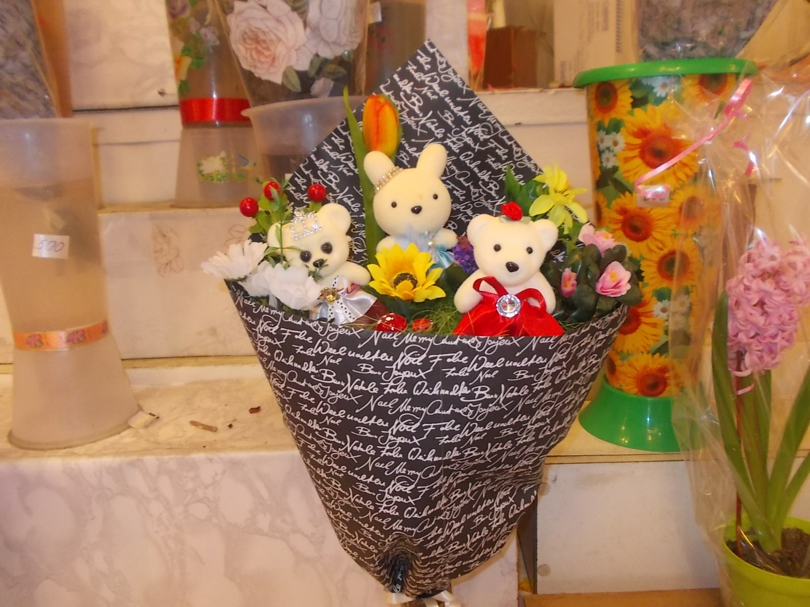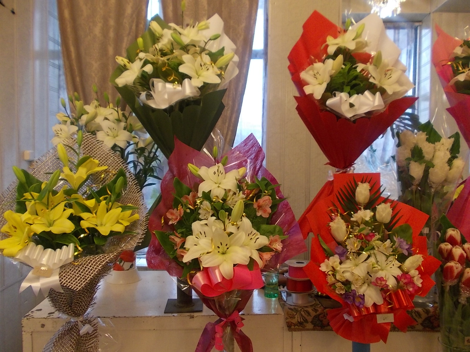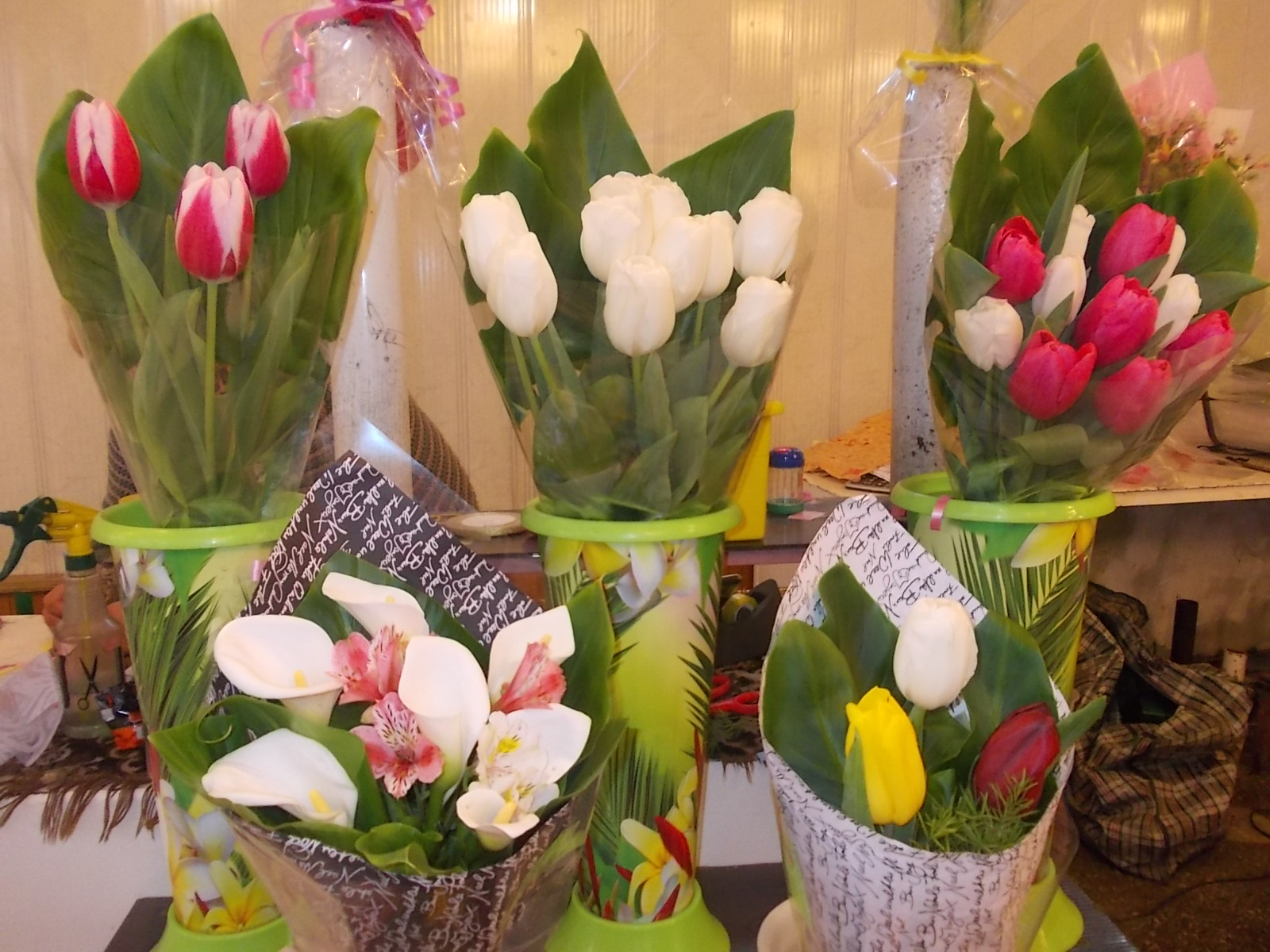 Ассортимент цветов нынче бьет рекорды. Так, в одном интернет-магазине можно заказать букет роз за... 20 тысяч сомов. И ведь наверняка кто-то заказывает! А можно купить розы с рук — на перекрестках в центре города то и дело встречаются бабушки-цветочницы. Штука у них стоит около 100 сомов. Тюльпаны — по 80 сомов, хризантемы — по 150.